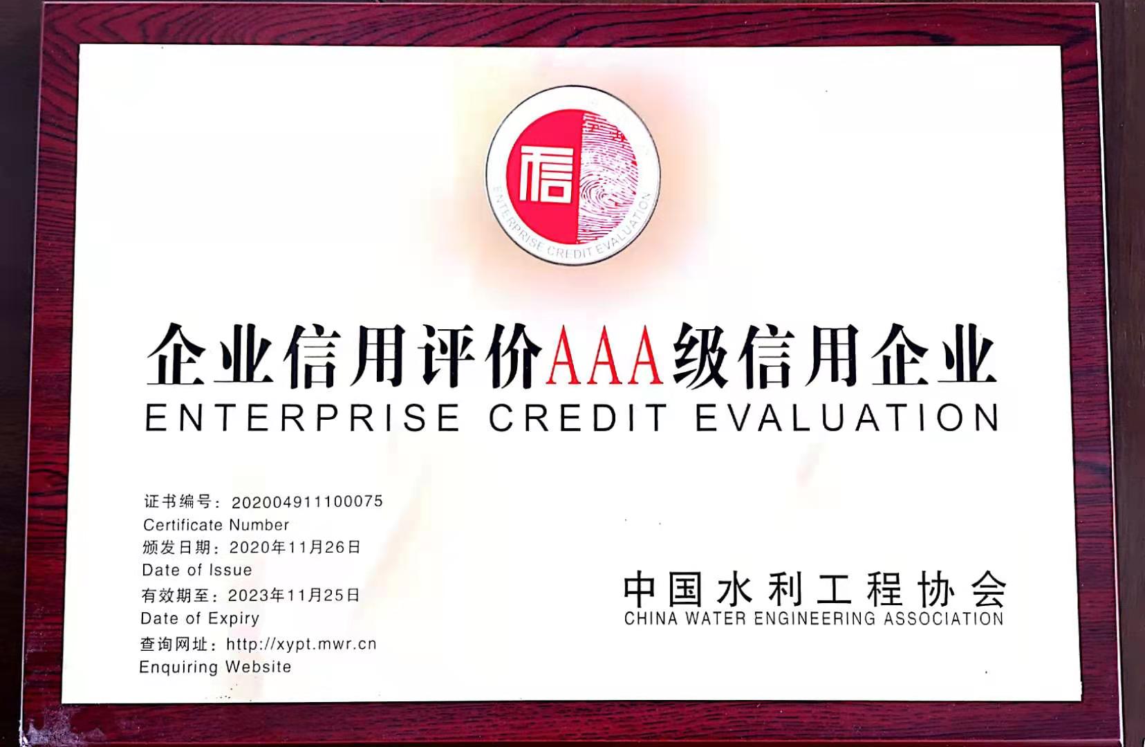 全國企業(yè)信用評(píng)價(jià)AAA級(jí)信用企業(yè)