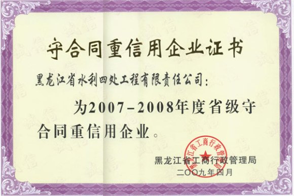 2007-2008省級(jí)守合同重信用企業(yè)證書